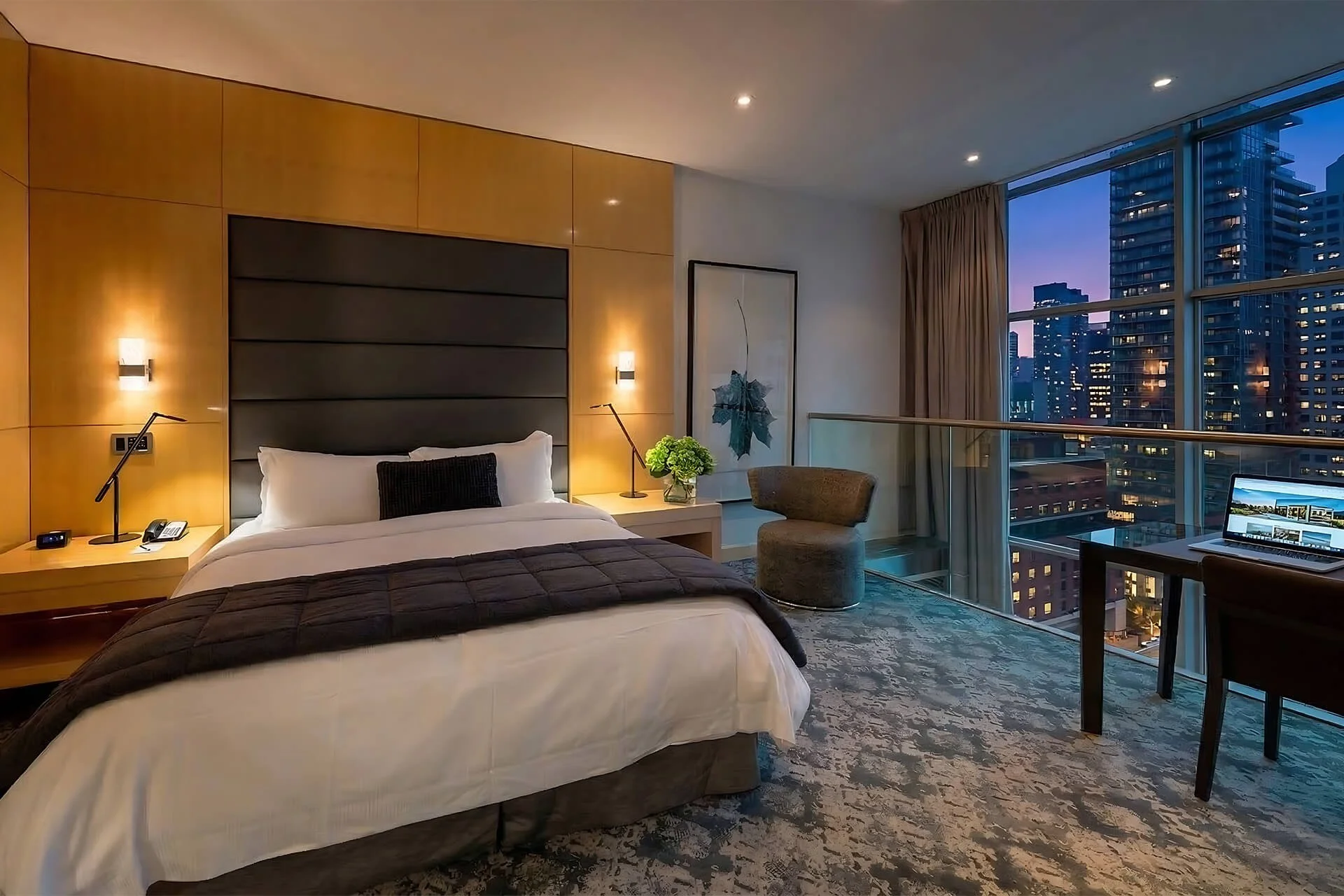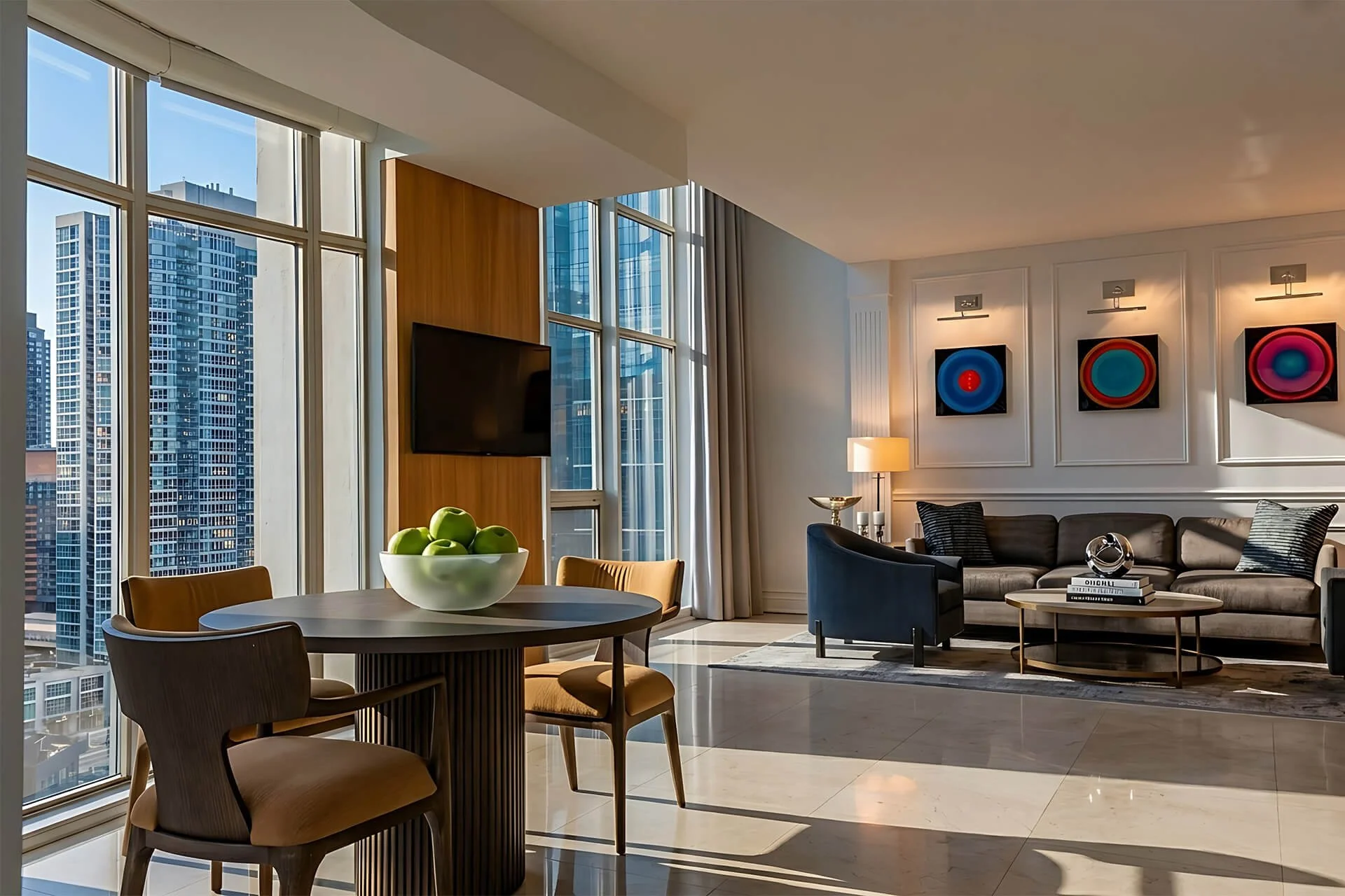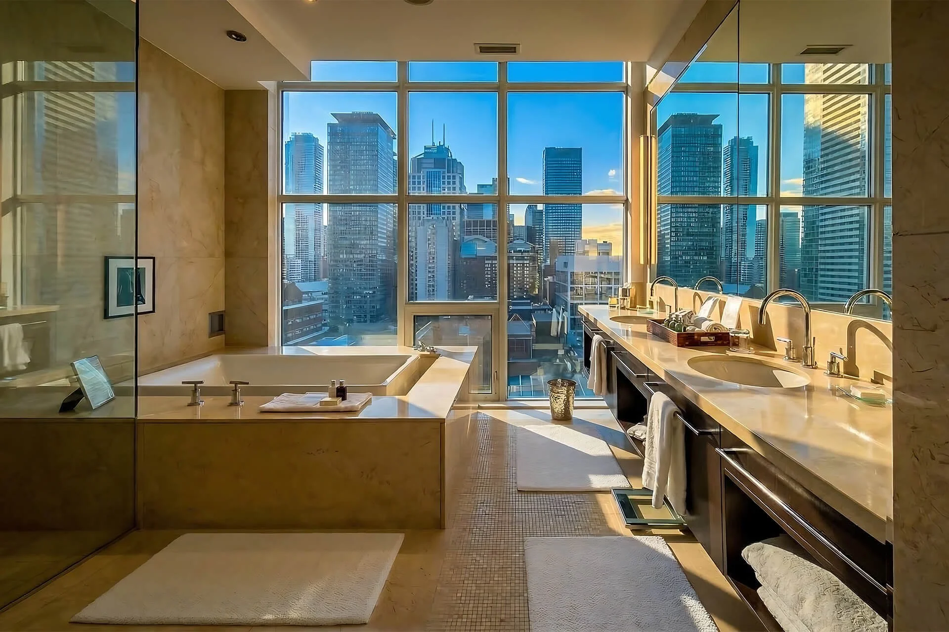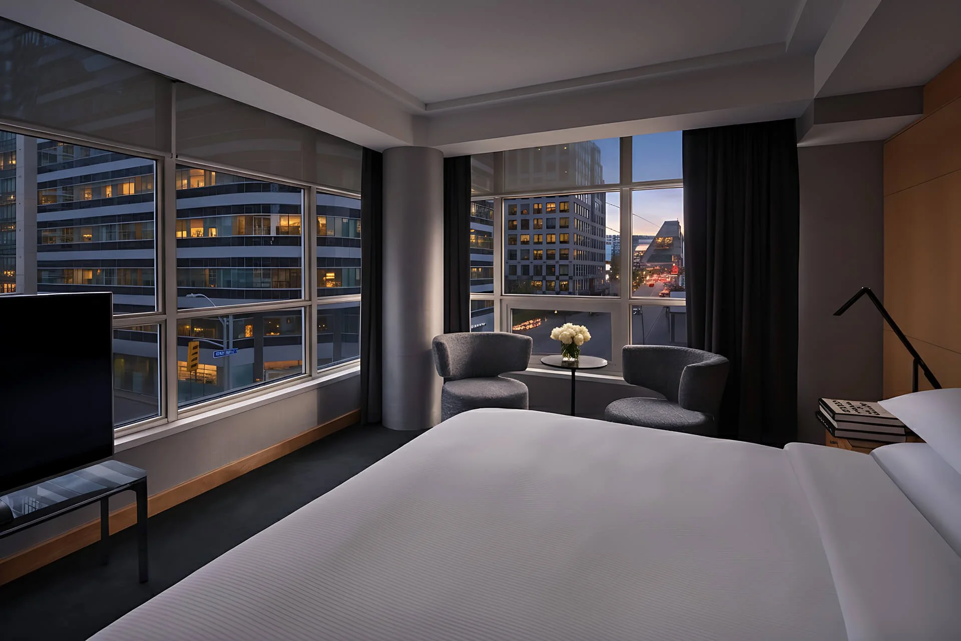 Light-filled suites that offer a luxurious retreat with a separate living room area, a marble bathroom featuring heated flooring, plus generous window exposures ensuring you the ultimate home away from home when staying in Toronto.