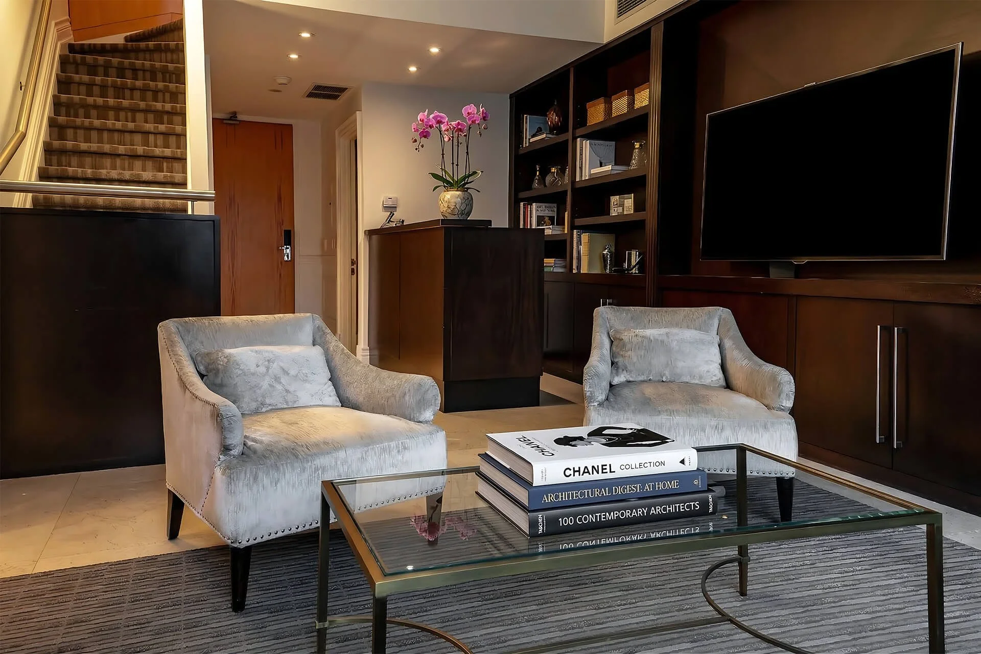 The pinnacle of modern luxury living. Toronto’s most exclusive hotel suite is a tri-level with its own private elevator. The SoHo Penthouse is the combination of our SoHo and Library Suites and features two king bedrooms, five bathrooms and a large furnished terrace with hot tub, this is simply one elite residence. Please note that this suite has a minimum 5-night stay requirement and is not available for private events.